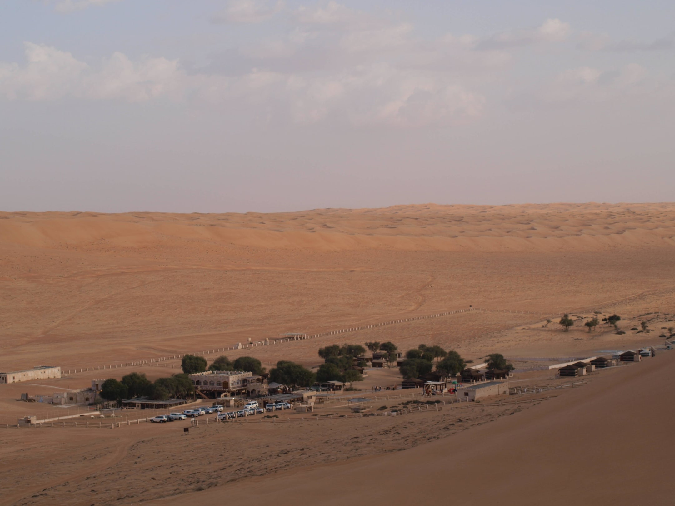 Blick von Dünen auf das Camp