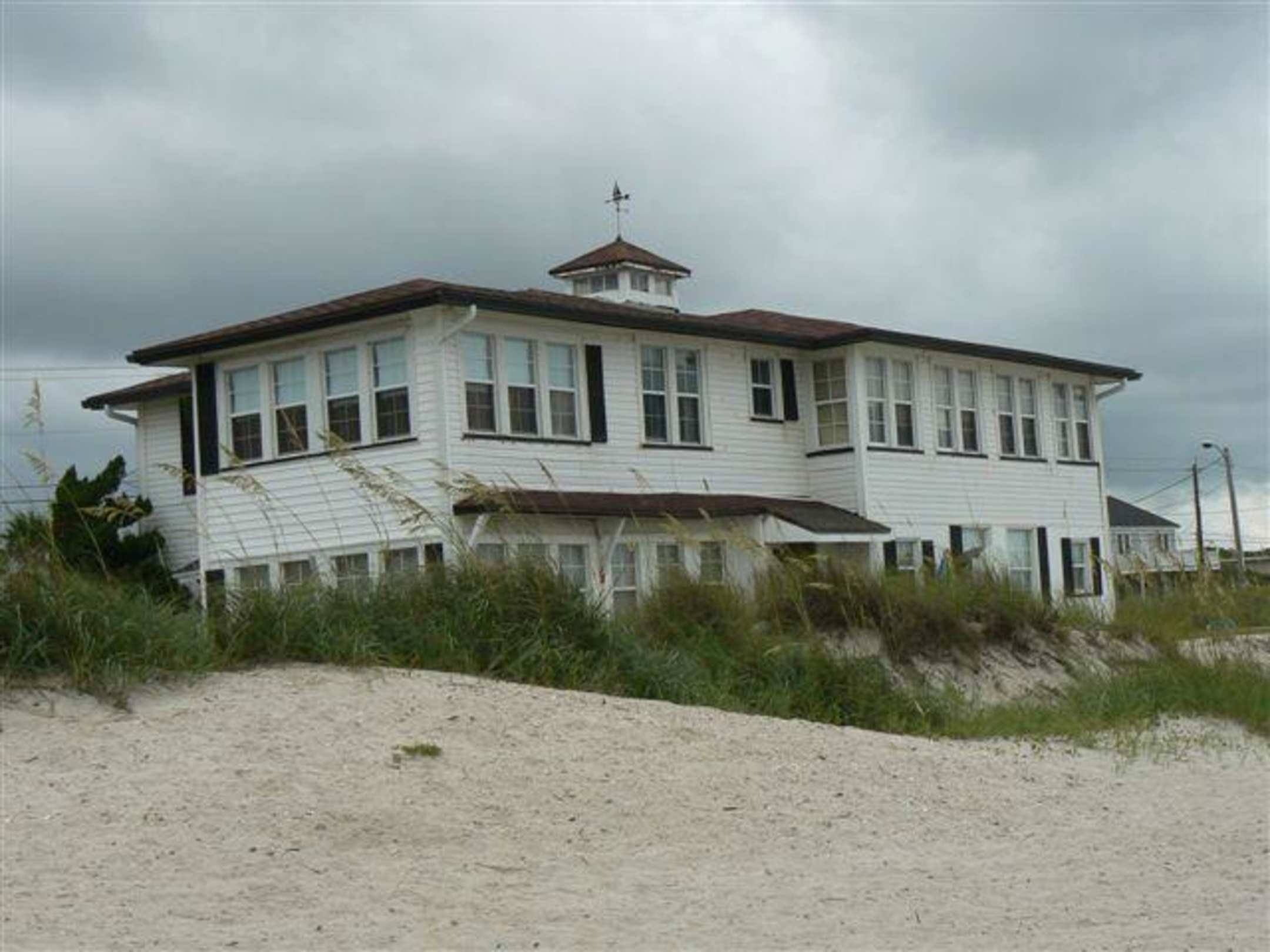 vom Meer auszeigt die Rückfront des Hauses vom Strand aus -