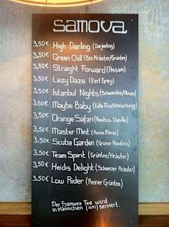 umfangreiches Teesortiment des nahegelegenen Teehändlers Samowa