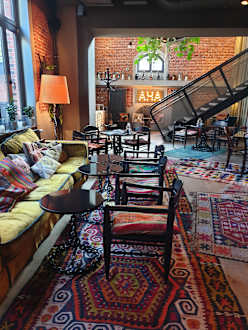 tolle bunte einrichtung in chill- und frühstücksraum