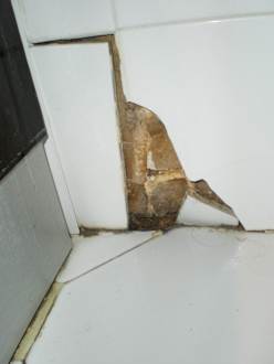 Lose Fliesen und Dreck in den Ecken