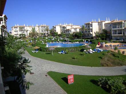 Blick vom Balkon auf die Poolanlage