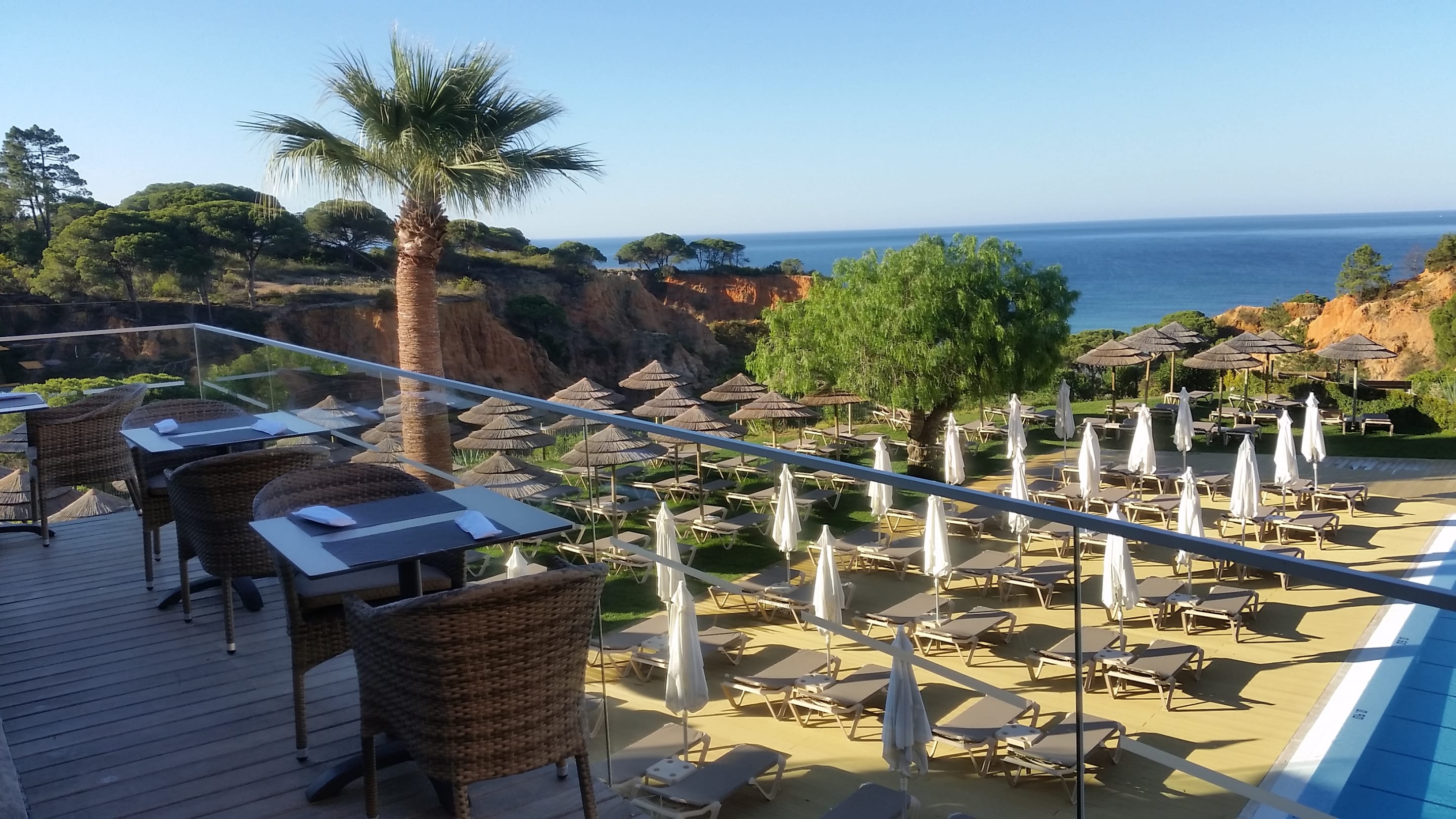 Restaurant mit Blick auf den Pool bzw. Strand