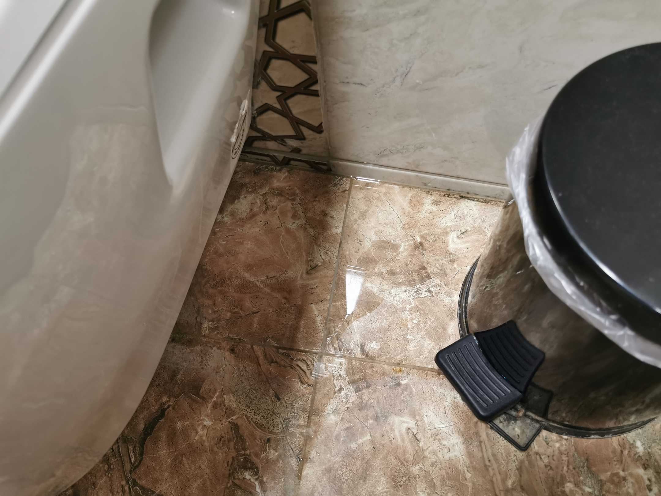 ZimmerUndichte Toilette. Angeblich kommt es von oben. Beim drücken der Spülung lief hinten vieles daneben.