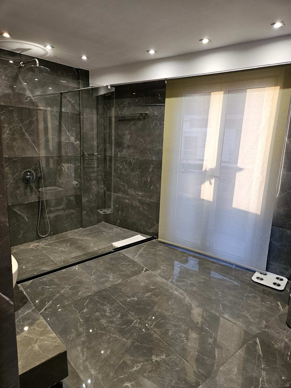 Badezimmer sehr geräumig, von dort aus Zugang auf die Terasse mit gemütlicher Sitzecke