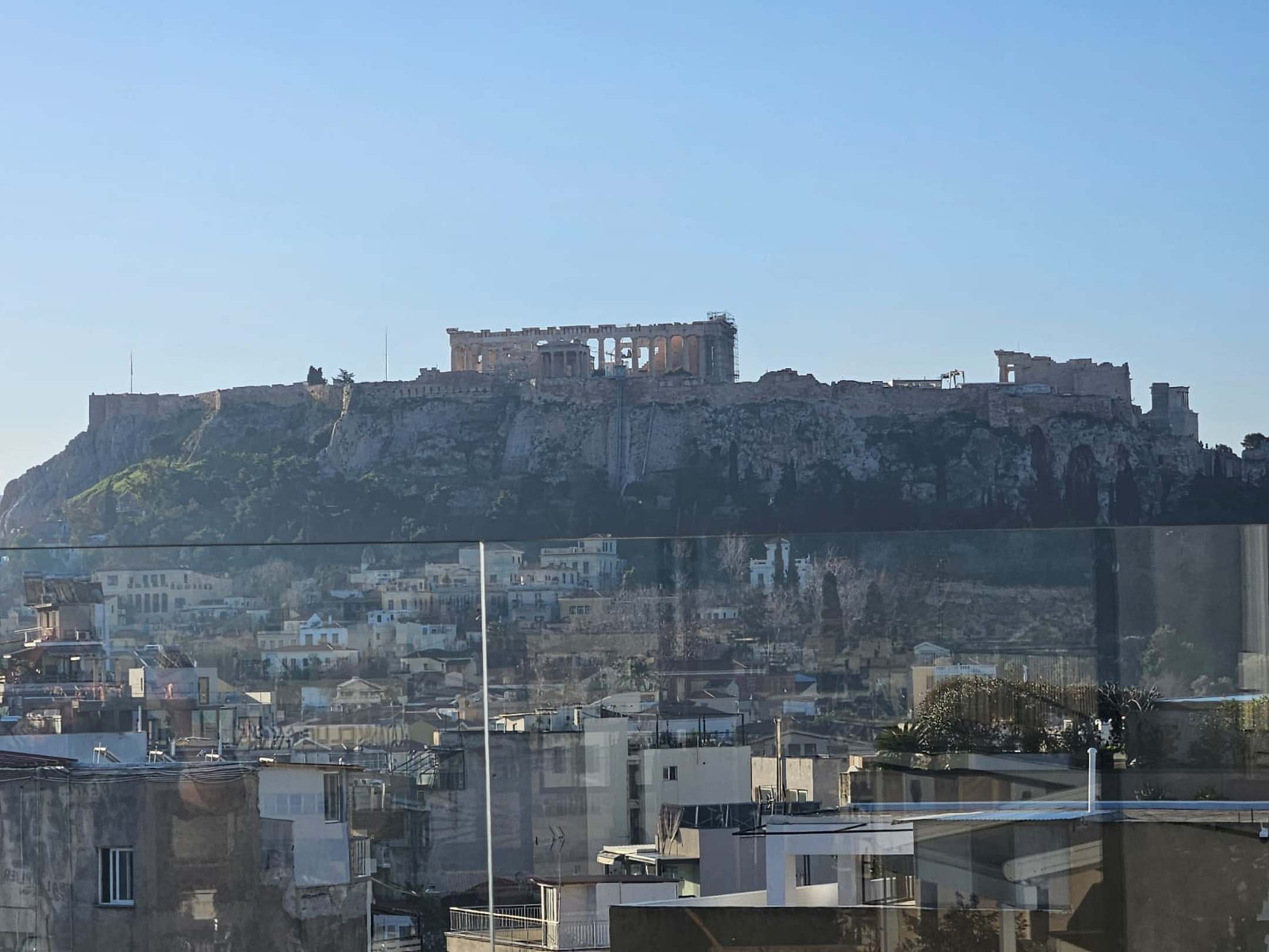 AusblickAusblick von der Dachterasse, auf der das Frühstück serviert ist und die auch sonst zugänglich ist.