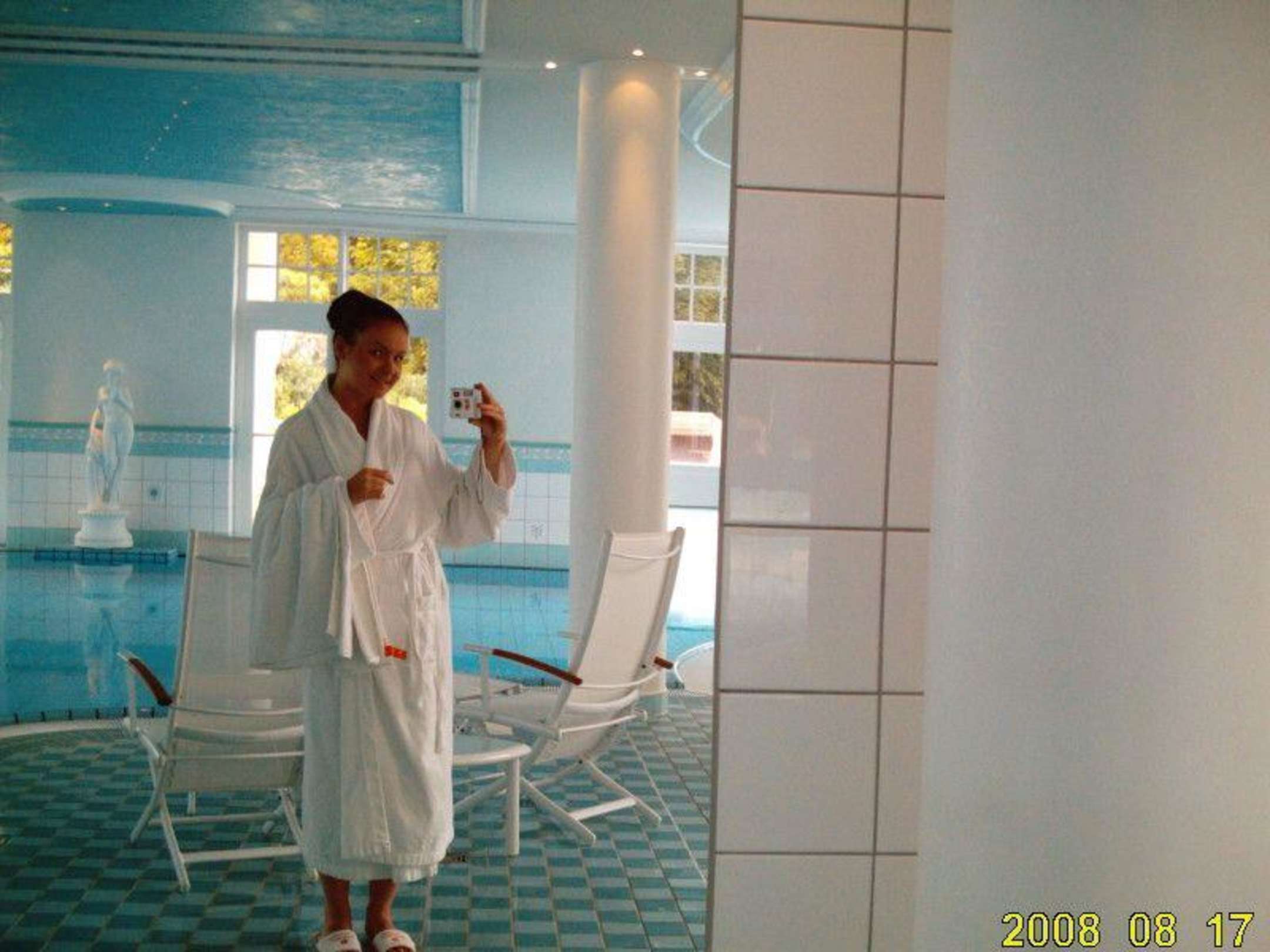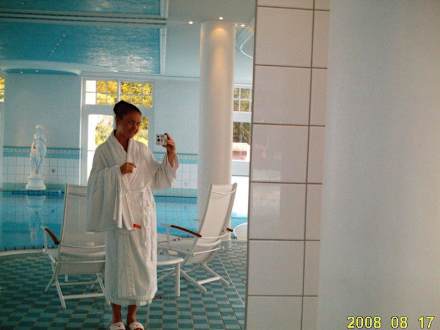 Poolanlage mit einem Star im RaumFrau L. im Relaxprogramm, unteranderem im Poolbereich