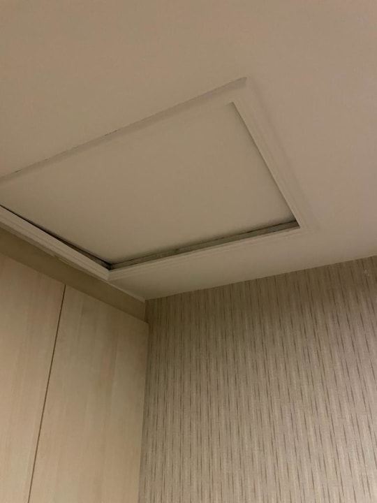 Wartungsklappe halb offen im Zimmer.