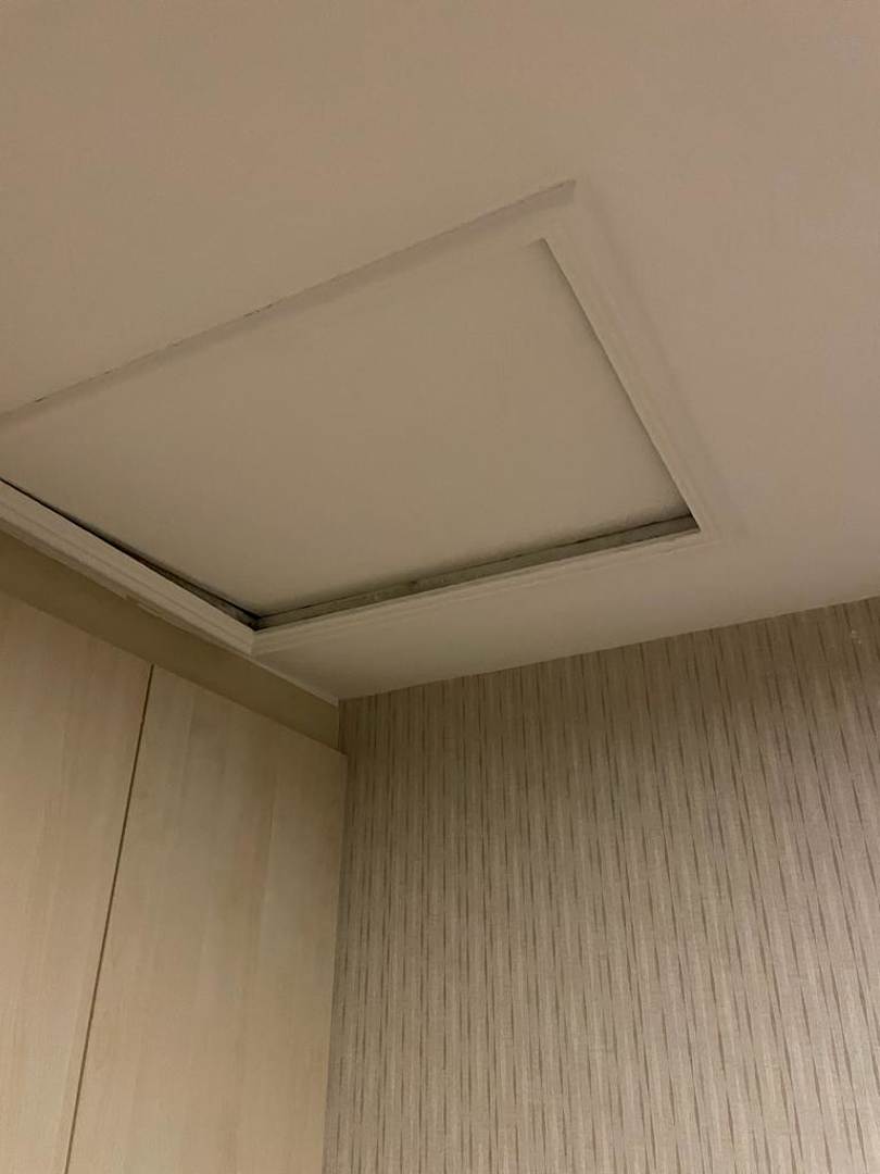 Wartungsklappe halb offen im Zimmer.