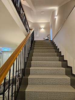 Treppe zur Lobby aus Richtung Frühstücksbereich