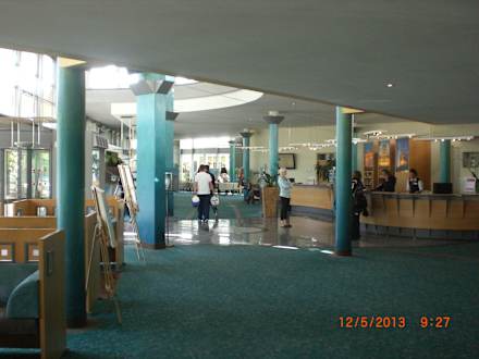 Rezeption und Blick zum Restaurant