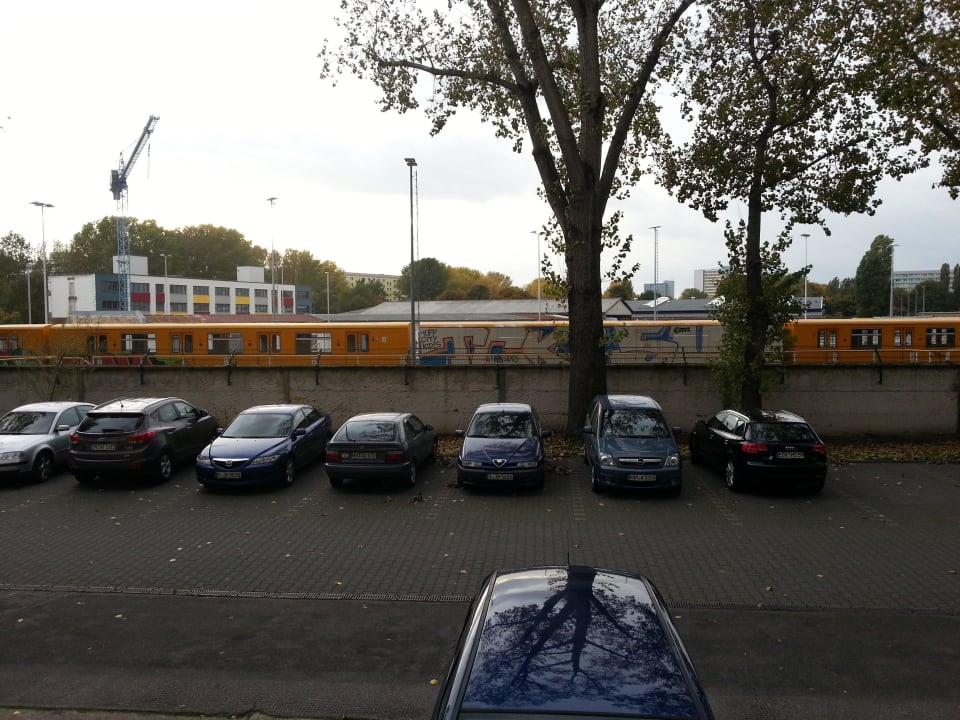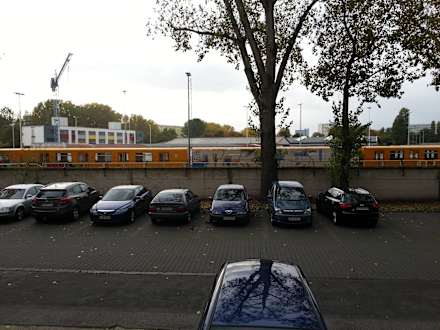 Blick aus dem Fenster; Parkplatz + BVG-Betriebshof