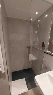 Große Dusche: Leider wird der Boden außerhalb auch nass.