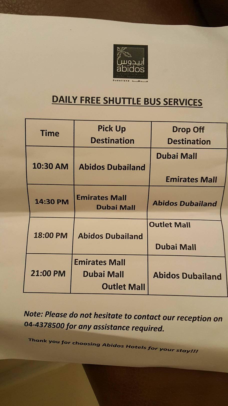 Shuttle Timings