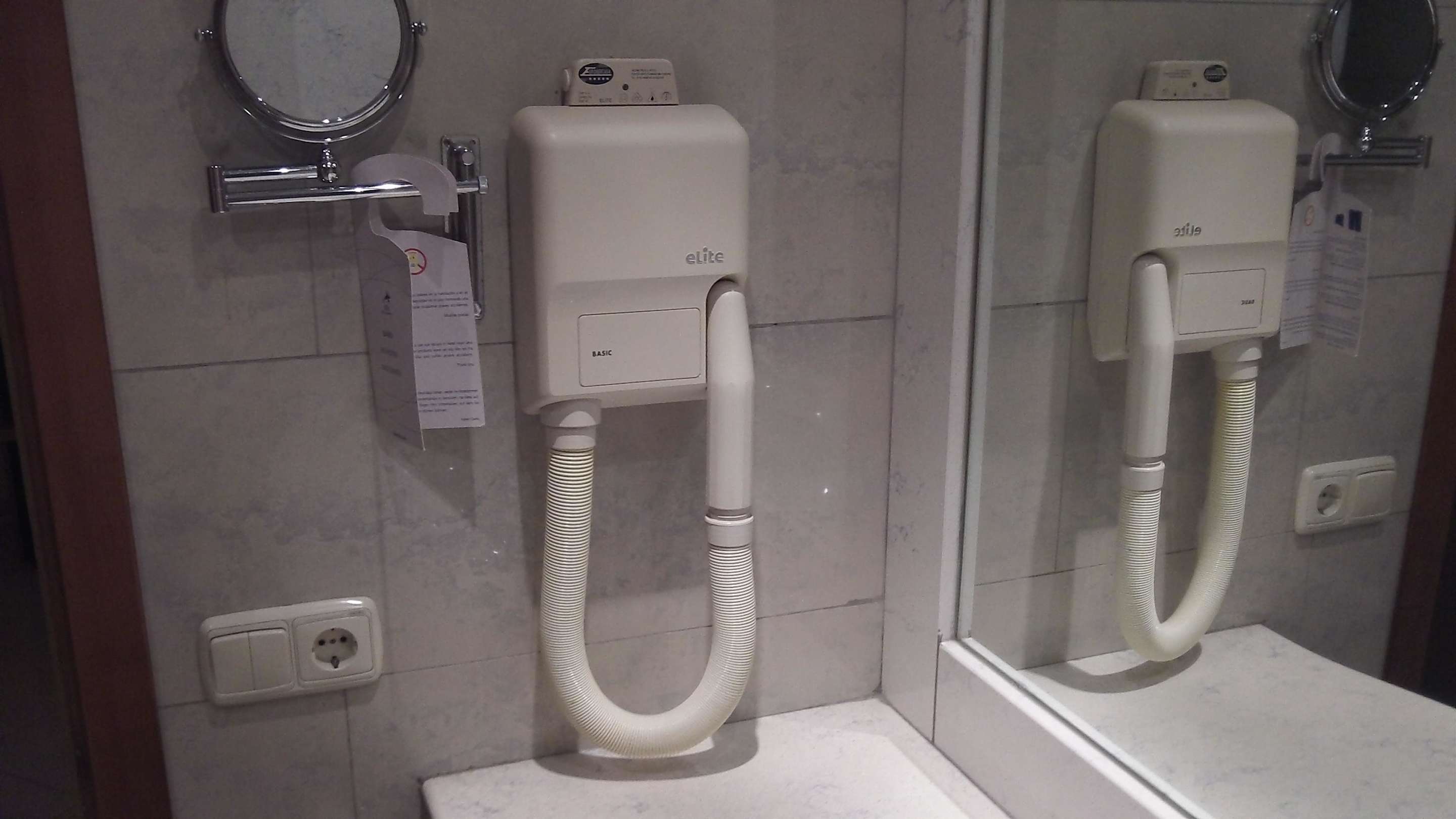 Vorsintflutliches Föhngerät im modernen Badezimmer