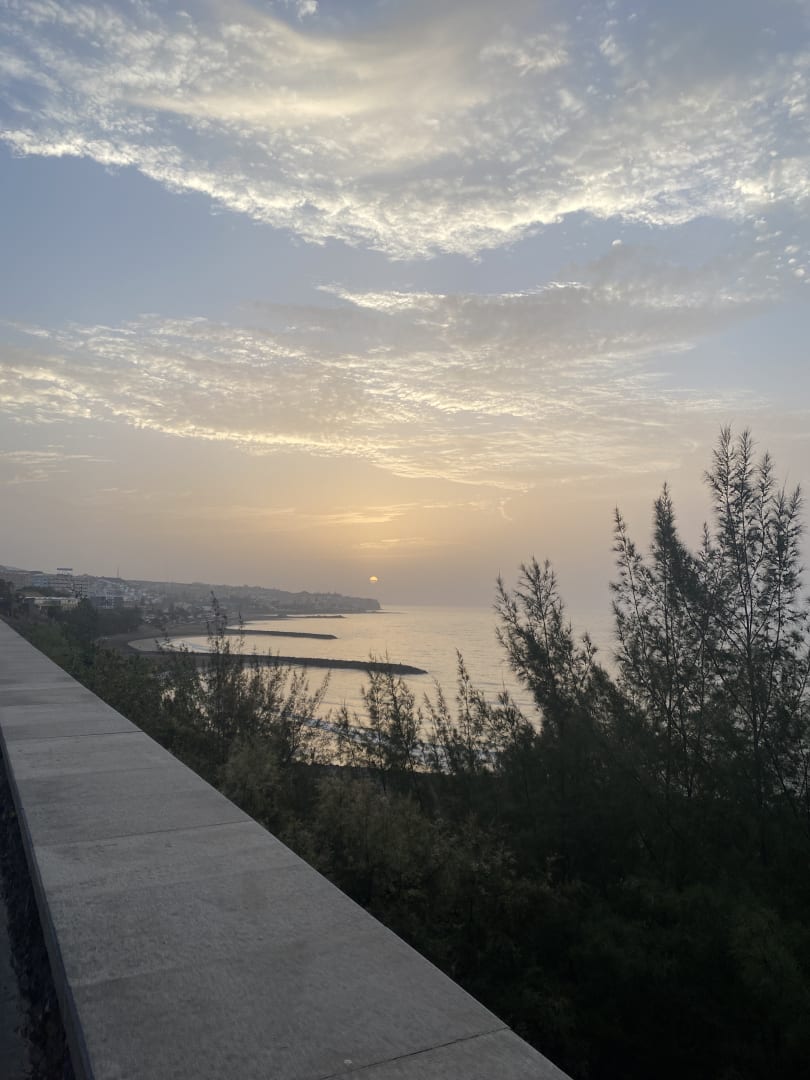 Morgentlicher Ausblick von der Strandpromenade beim joggen.
