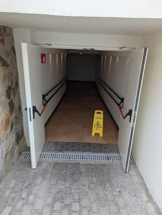 Der Eingang zu unserem Wohnblock ist ein nicht besonders hübscher Kellereingang