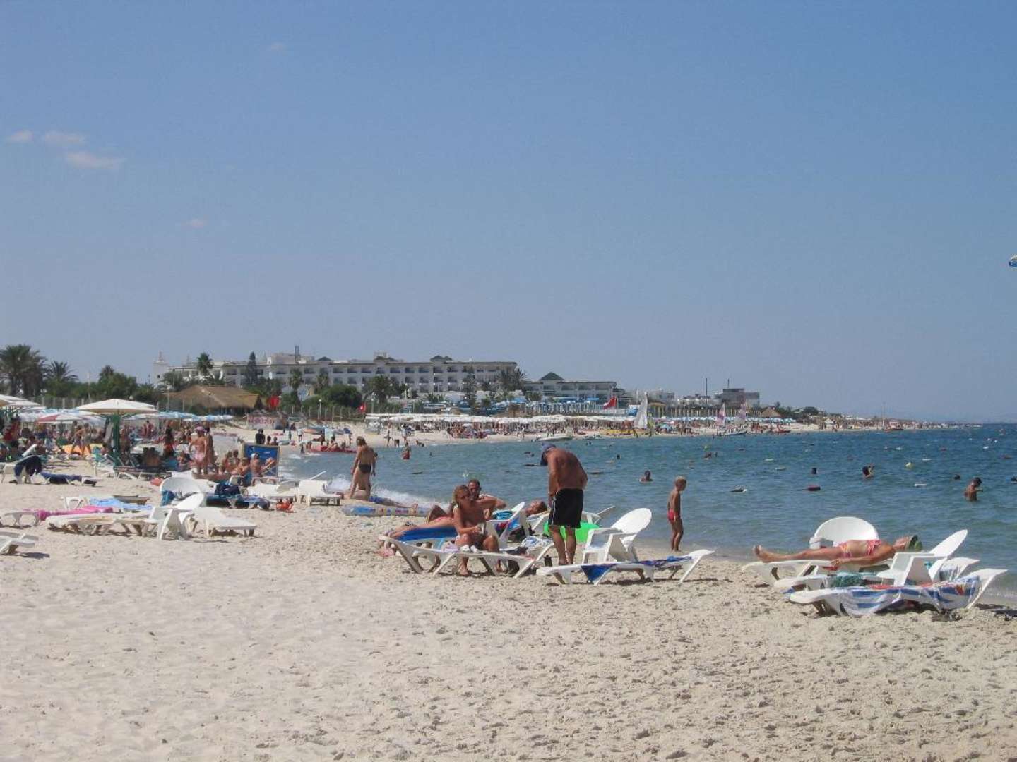 Sandstrand (Ansicht nach links)Sandstrand links des Hotels Occidental Allegro Abou Sofiane in Port el Kantaoui, Monstir, Tunesien