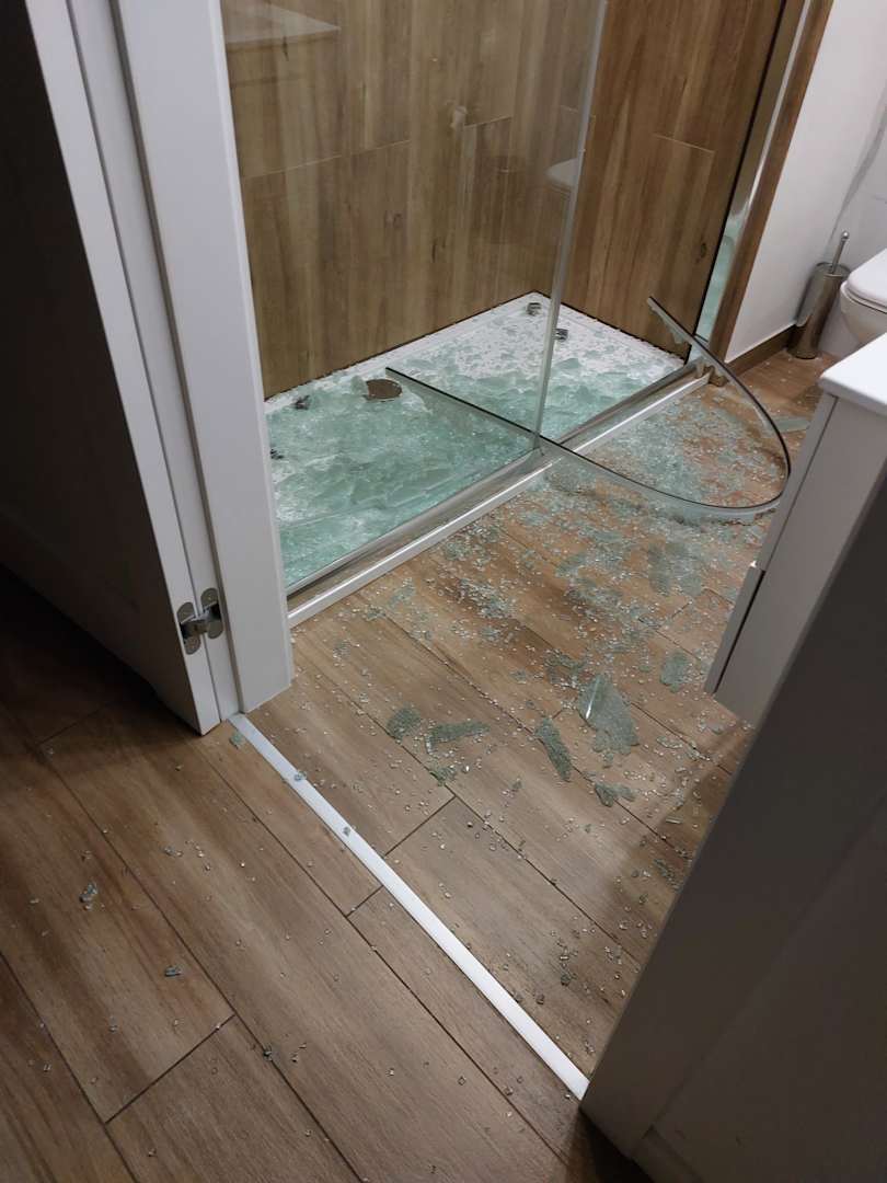 Zerbrochene Tür zur Dusche bei Ankunft