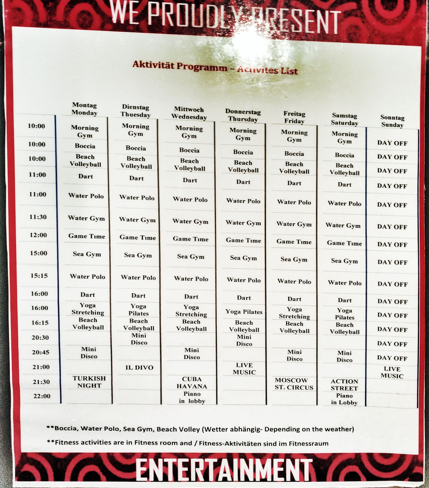Das Freizeitprogramm in der 2. Juni-Woche.