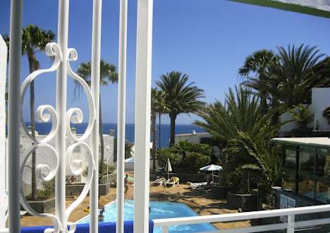 Blick zum Pool und aufs Meer