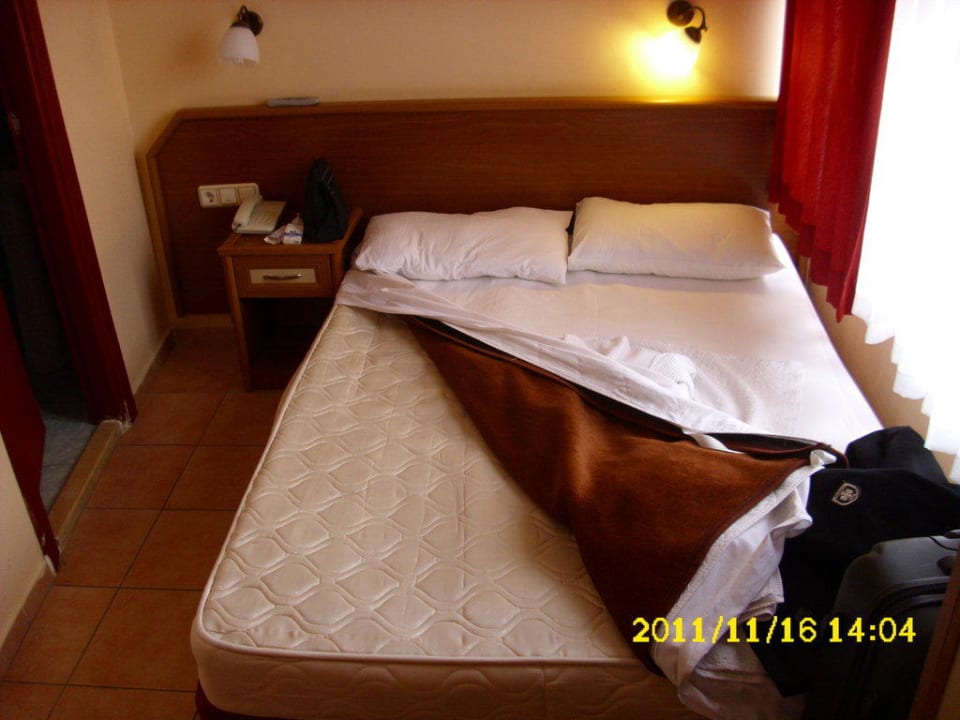 So gross ist das Zimmer 223. Rechts gleich das Fenster, links die Badtür. Die Wolldecke sollte die abgenutze Matratze ausgleichen und Flecken abdecken. Ist so üblich laut GTI Reiseleiter
