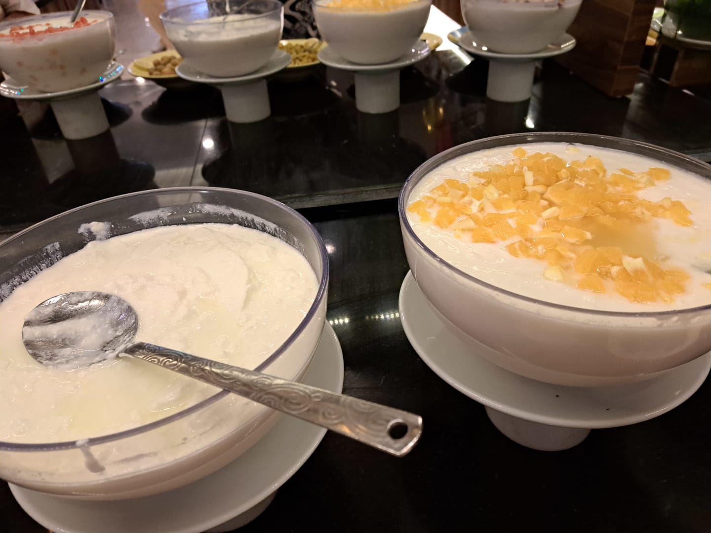Abgestandener Joghurt mit alten Früchten zum Frühstück und Abendessen.