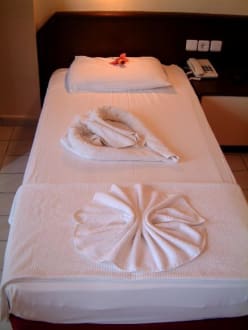 Liebevoll gemachte Betten (1)Liebevoll gemachte Betten im Acar Hotel in Alanya (Türkische Riviera)