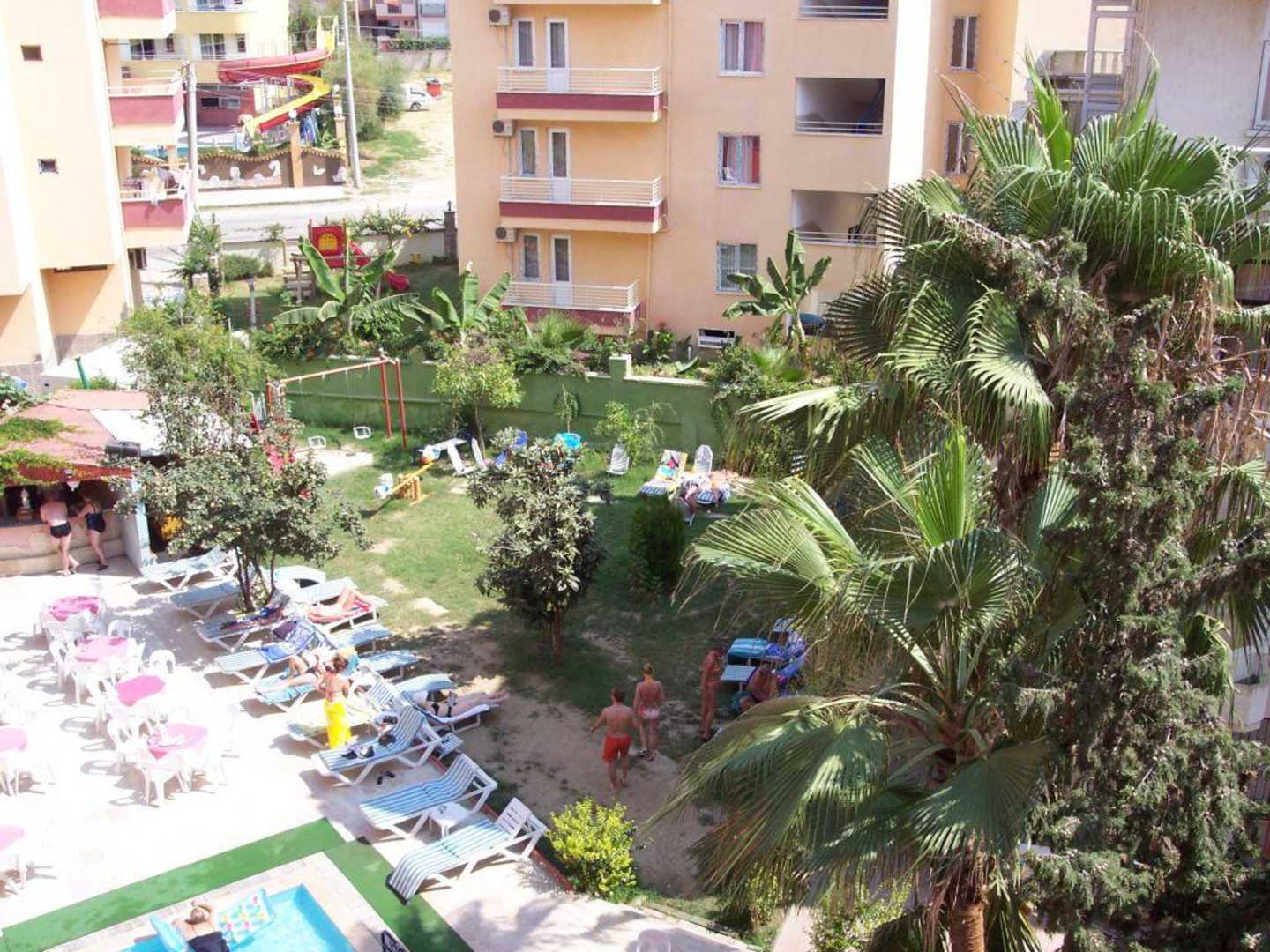 Die komplette "Hotel-Anlage"Man beachte den Stromgenerator zwischen Bar und Kinderschaukel - Wenn der Strom ausfällt (und das passiert öfter als man denkt), kann man sich nur noch im Zimmer oder außerhalb des Hotels aufhalten wegen dem Krach und Gestank den das Ding macht!