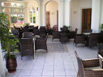Der Aufenthaltsraum liegt zwischen dem Salon-Barbereich und der Poolanlage. Hier kann man auch an kühlen tagen sitzen und aufs Meer kucken.