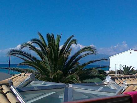Blick aufs Meer und Palmen