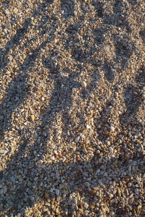 Strandabschnitt vorm Hotel manchmal mit Kiesstreifen kurz vorm Wasser