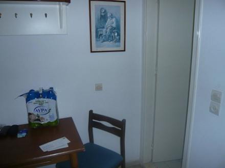 EingangsbereichVon der Küche aus zum Badeingang. Mit der Küche hatte man mehr Platz und noch eine Sitzgelegenheit mehr.