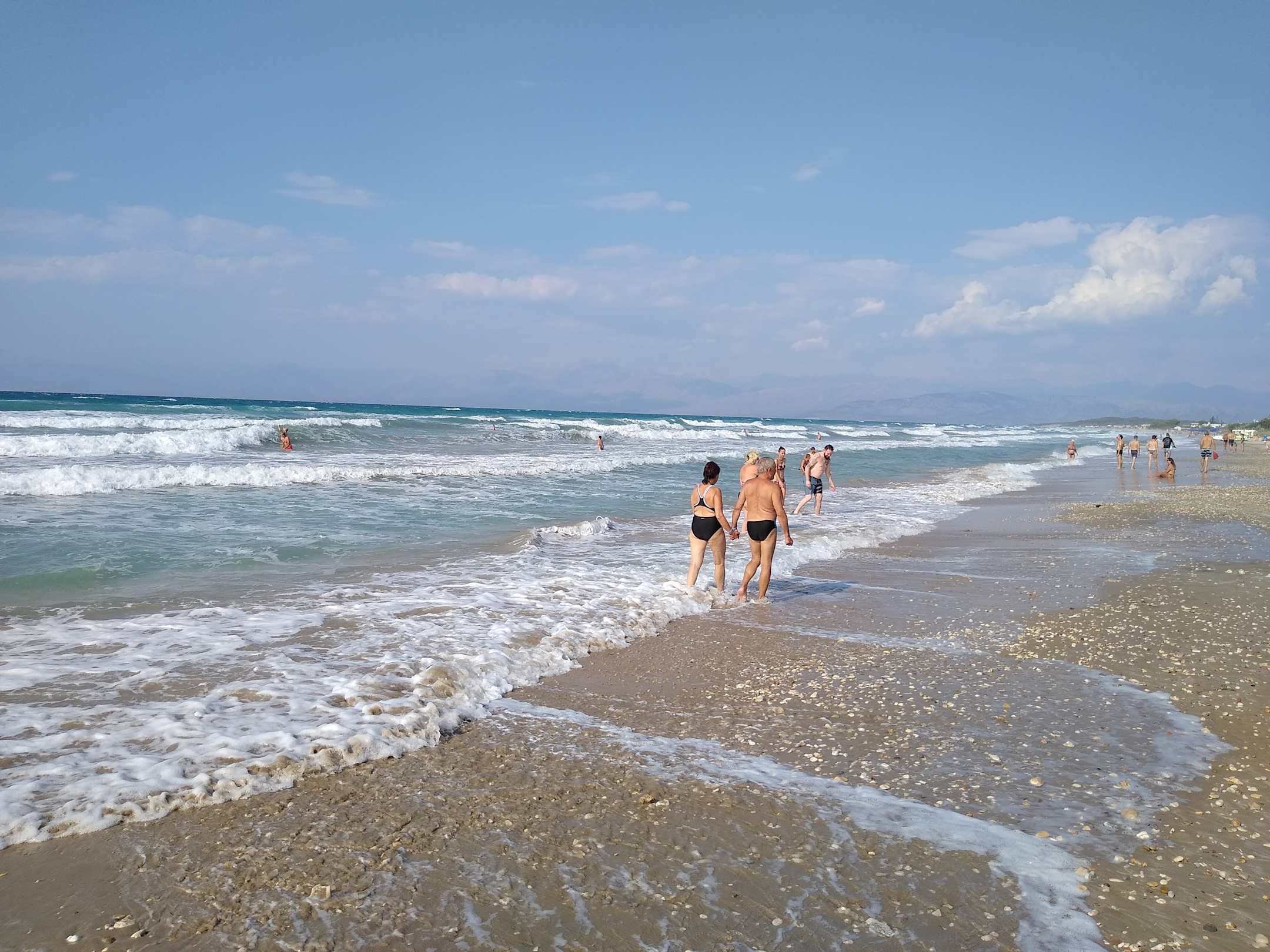Strandabschnitt im Hotelbereich bei wunderbarem Wetter und stärker Brandung.