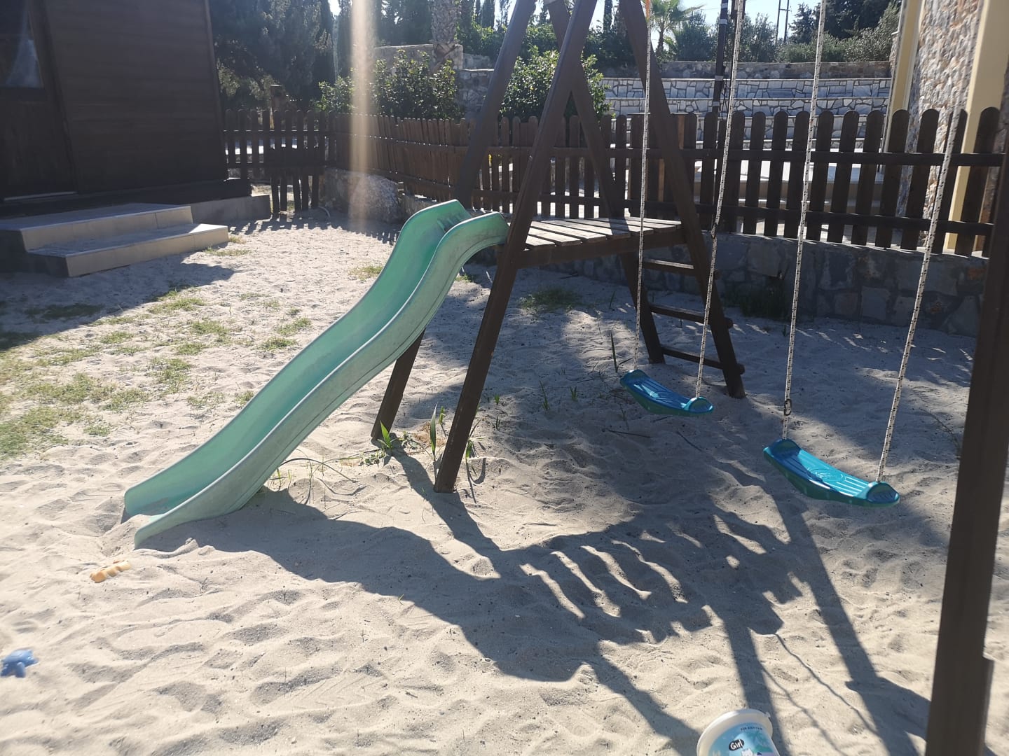 Sport & Freizeit"Spielplatz": eine kleine Rutsche und zwei Schaukeln.