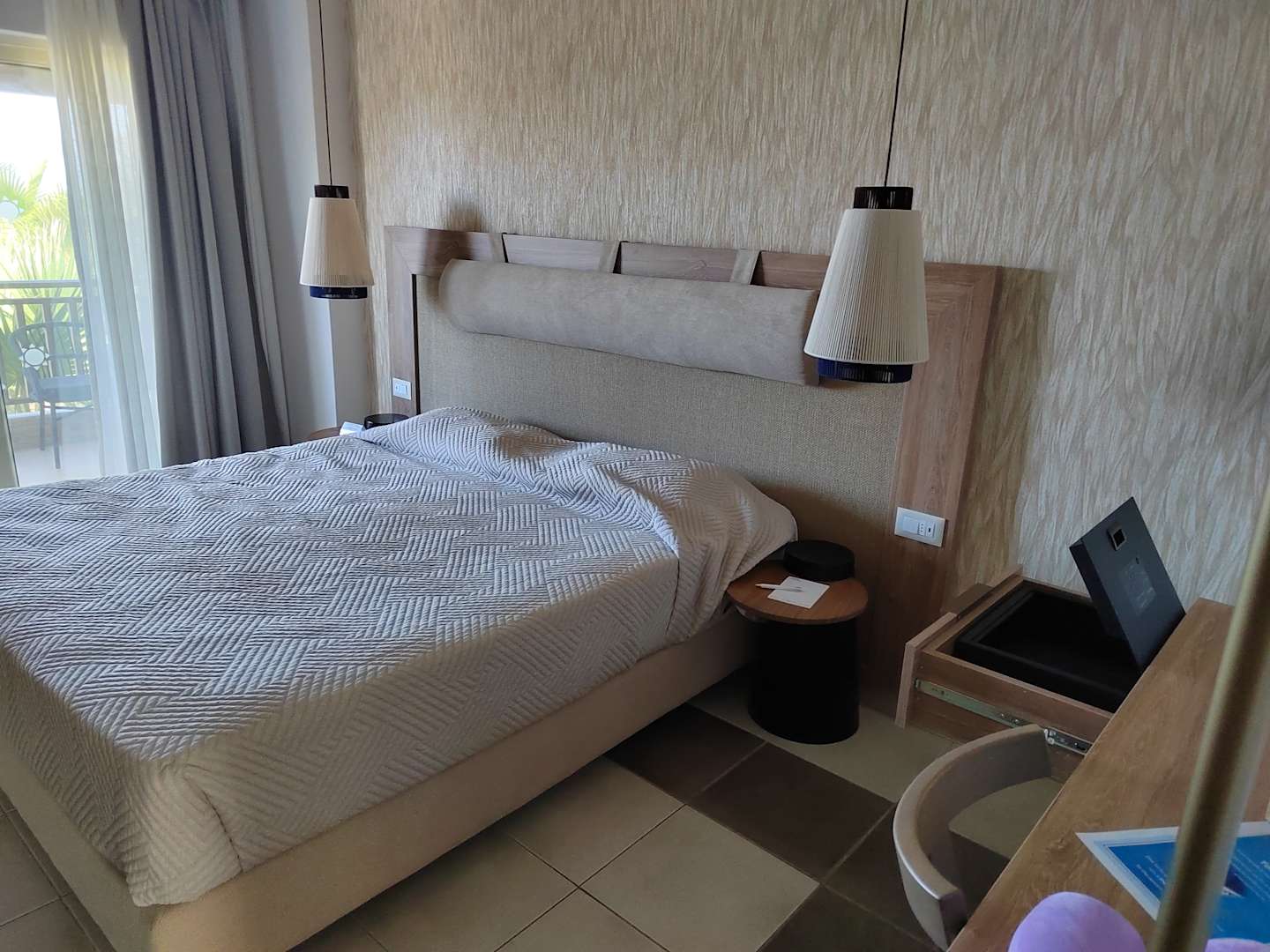 Bett, Safe, Schreibtisch