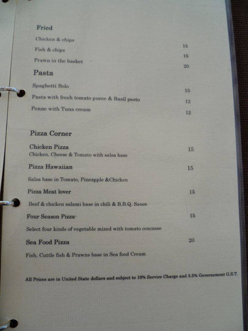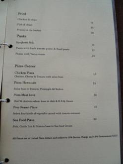 Speisekarte an den Bars, kostet extra