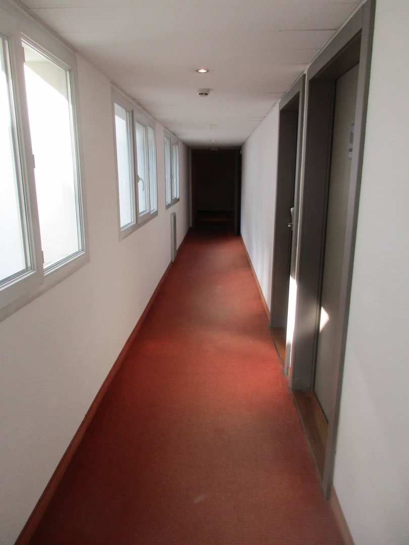 Gang mit etwas vergammelten Teppichen