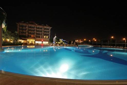Poolanlage bei Nacht