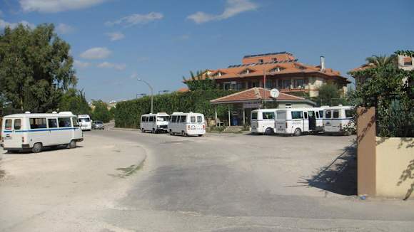 Dolmus-Haltestelle vor dem HotelDie Straße, die zum Strand überquert werden muss