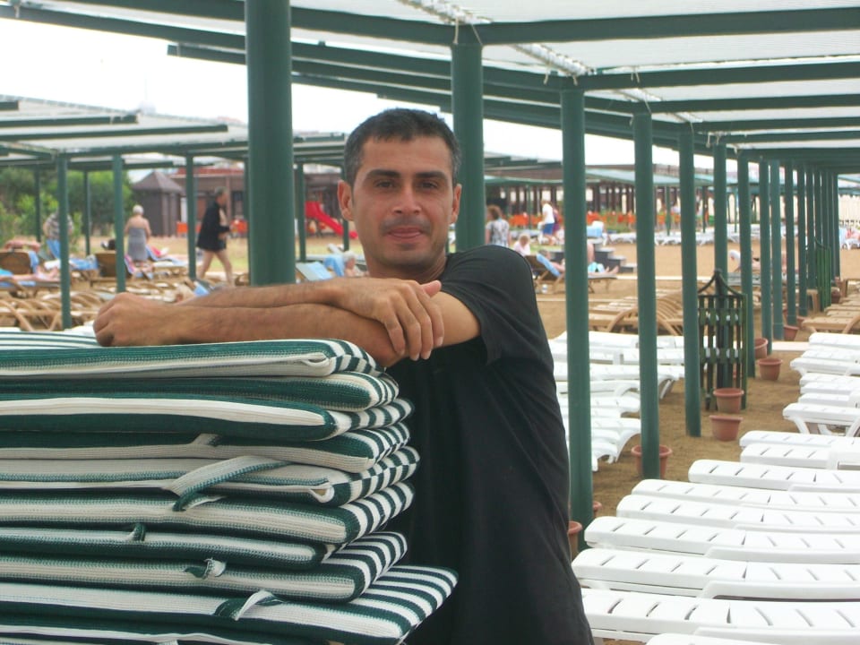 Tamer, macht einen klasse Job. Tamer, ist für die Liegen und Auflagen zuständig. Macht einen super Job und ist immer gut gelaunt.