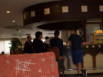 Wir, in der Lobby-Bar des Hotels