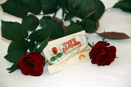 GeburtstagsdekoAußer Blumen gab es noch einen großen Obstkorb und eine Flasche Rotwein