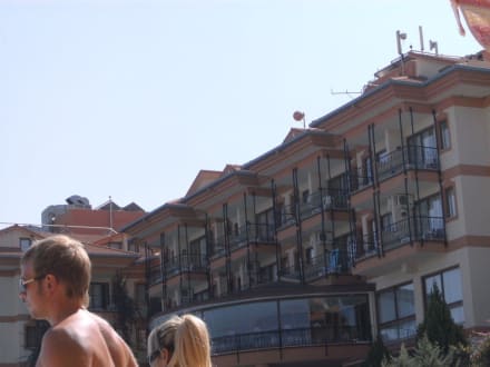 Hotel vom Pool aus gesehen