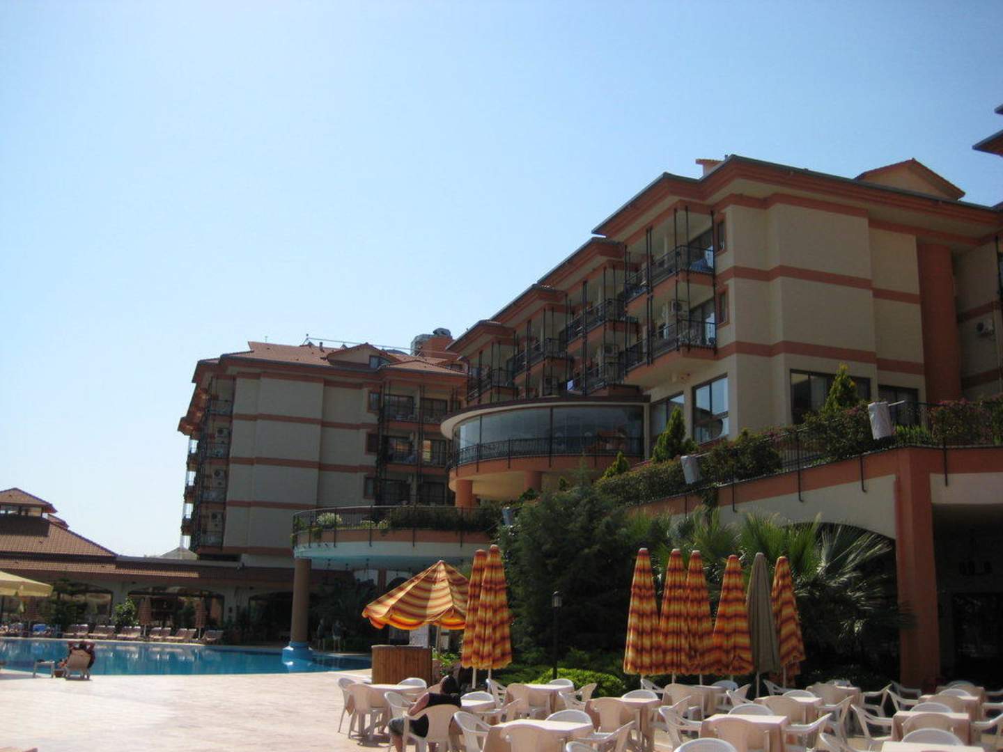 Hauptgebäude vom Pool gesehen