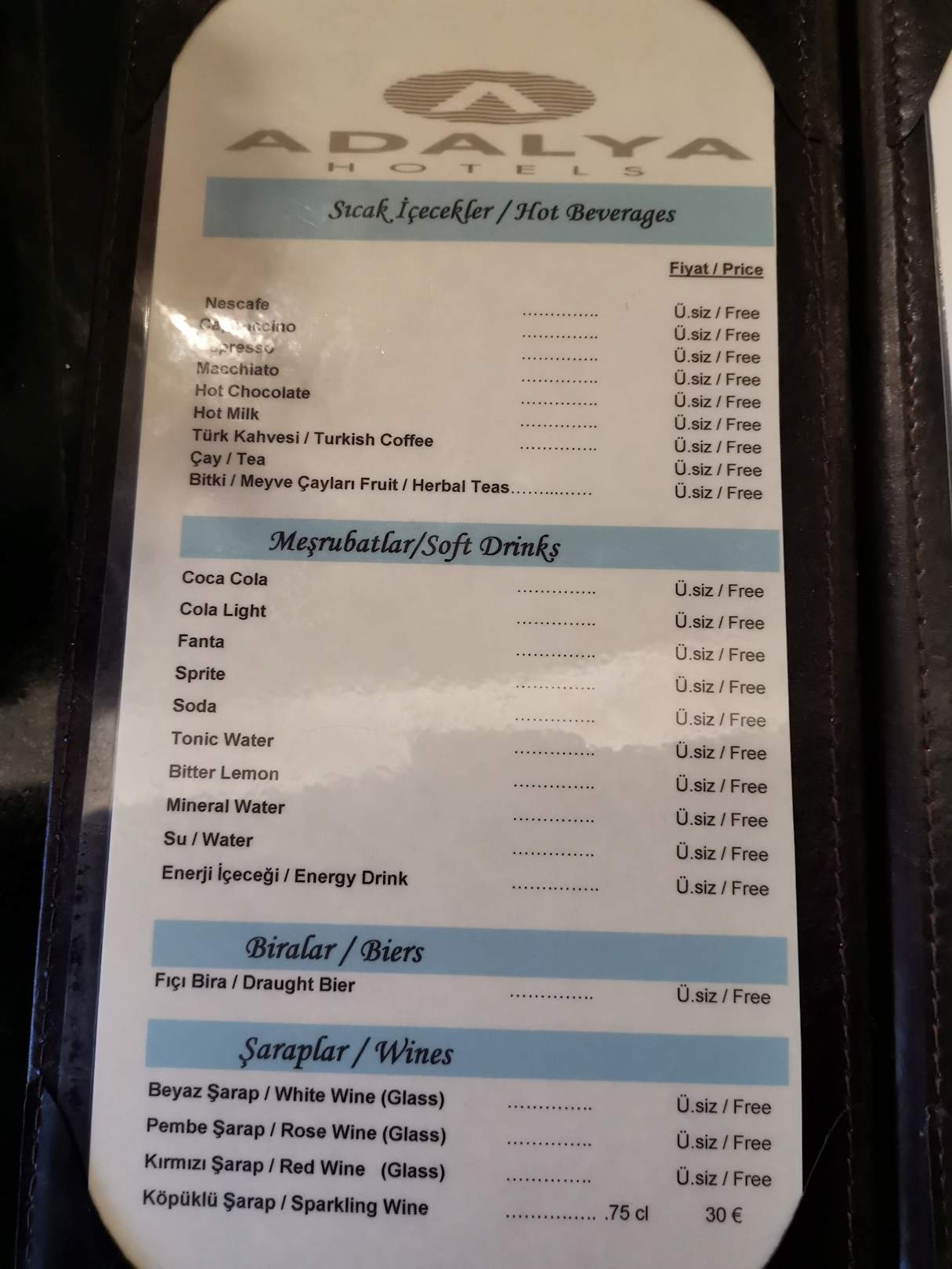 Getränkekarte in der Lobbybar