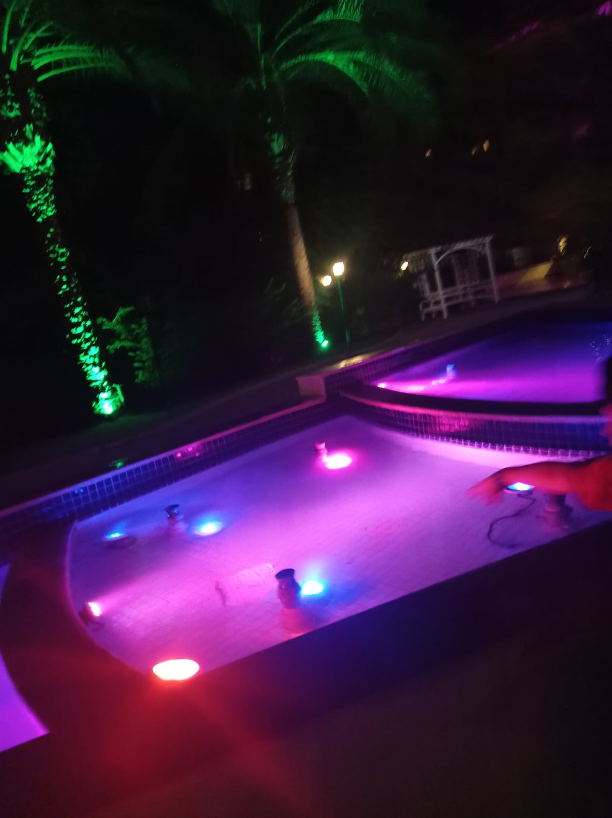 Der beleuchtete Brunnen draußen am Eingangsbereich ist sehr schön