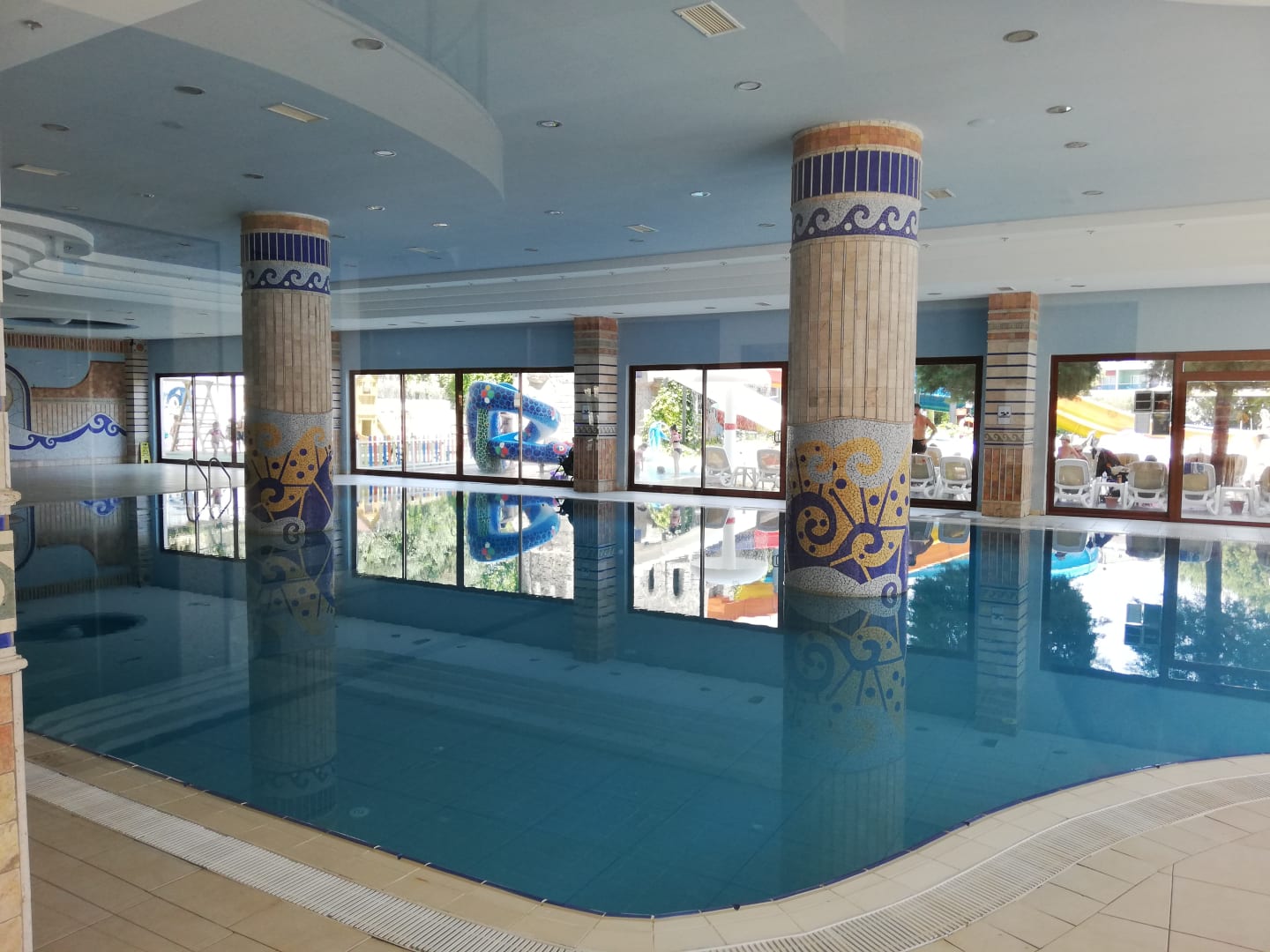 PoolDer Pool im Innenbereich ist gleich in der Nähe vom Wellnessbereich. Im Sommer ist er geschlossen.