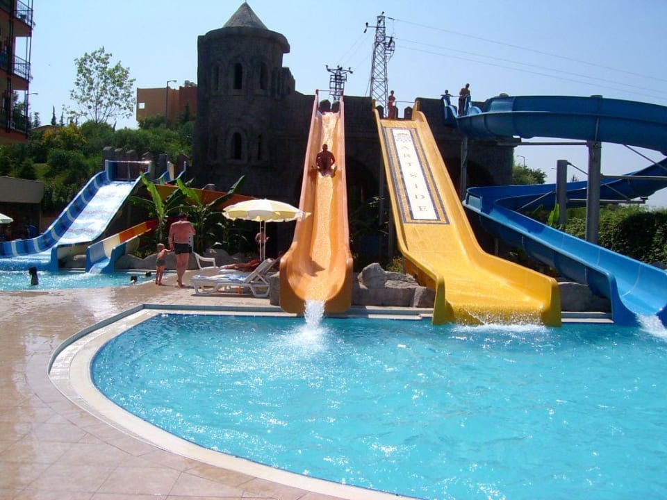 große Rutschendas sind die Kinder/Erwachsenen Rutschen im linken hinteren Hotelbereich