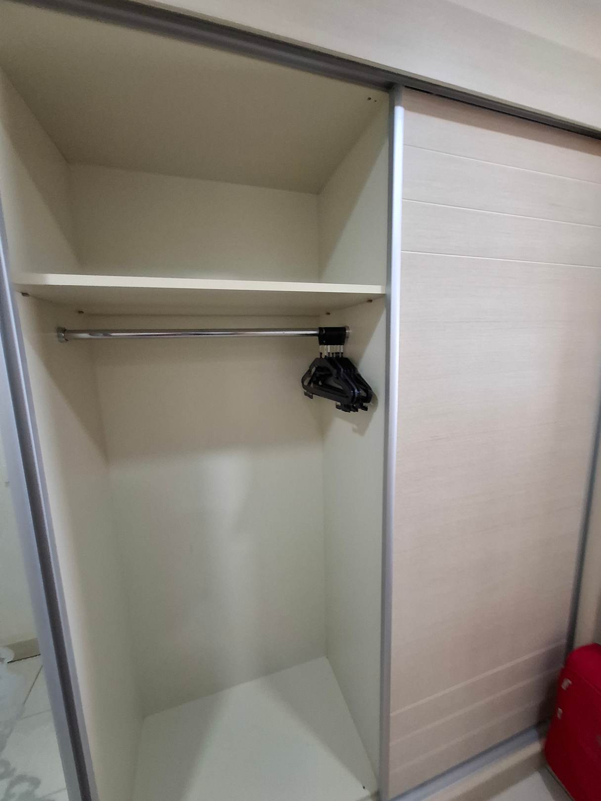 Kleiderschrank mit Kleiderstange und Kleiderbügeln